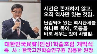 대한민국民聲(민성)학술포럼 개막식 한국고전학습연구원 김봉한 원장 축사 영상입니다.