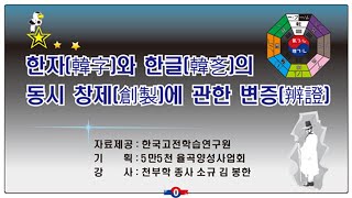 "韓字(한자)와 韓㐎(한글)의 동시 創製(창제)에 관한 辨證(변증)" 김봉한 한국고전학습원장 특강 영상입니다…